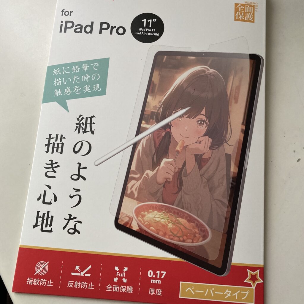 iPadProに「紙質感の液晶カバー」をつけました。レビューを見てて「紙みたい」とありましたが、ガチに「半紙の裏側」のような質感です。ApplePencilがひっかかります。