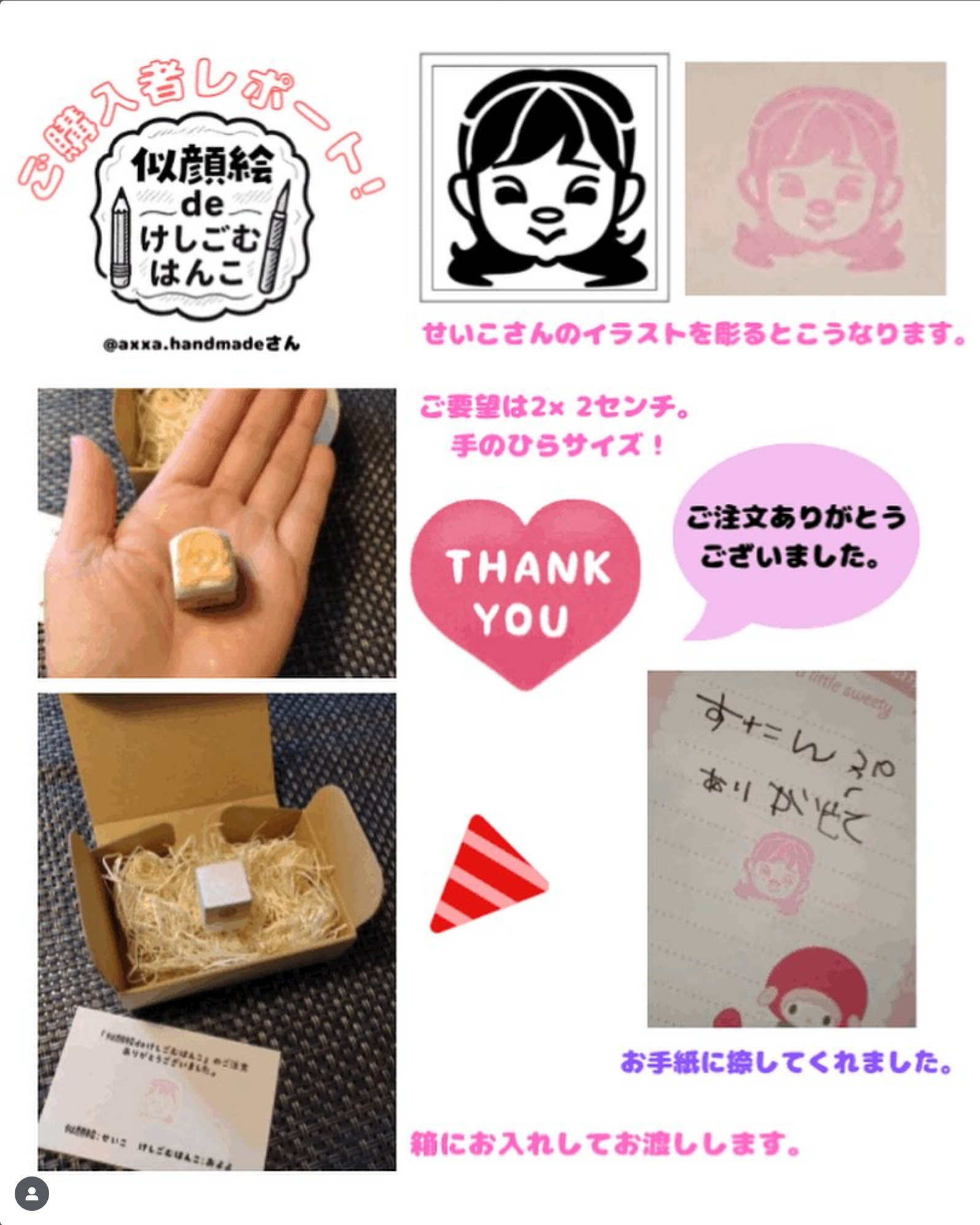 似顔絵deけしごむはんこ zizodo | 2025年7月7日 | 日常つれづれ | コメントはまだありません 消しゴムはんこ作家さんとコラボしている「似顔絵はんこ」を利用してくれた方から「画像使っていいですよ」と許可いただきました。私、イラレでデータ作っただけなのに・・・共同投稿にしてもらえました。うあわぁ、恐縮するぅ〜 サンプル Related Posts 2015大信州展 コメントはまだありません | 5月 21, 2015 キャリーバック コメントはまだありません | 2月 15, 2023 地植えの蘭 コメントはまだありません | 3月 23, 2020 楽しみましょう コメントはまだありません | 4月 2, 2021 About The Author 似顔絵せいこ 横浜市金沢区の似顔絵師爆誕!を目指して一日一歩で進みます。日常のアレコレ、似顔絵のアレコレを思うままに載せてます。 Add a Comment コメントをキャンセルメールアドレスが公開されることはありません。 ※ が付いている欄は必須項目ですComment:*Name:* Email Address:* Website: Save my name, email, and website in this browser for the next time I comment. reCaptcha の認証期間が終了しました。ページを再読み込みしてください。 Δ