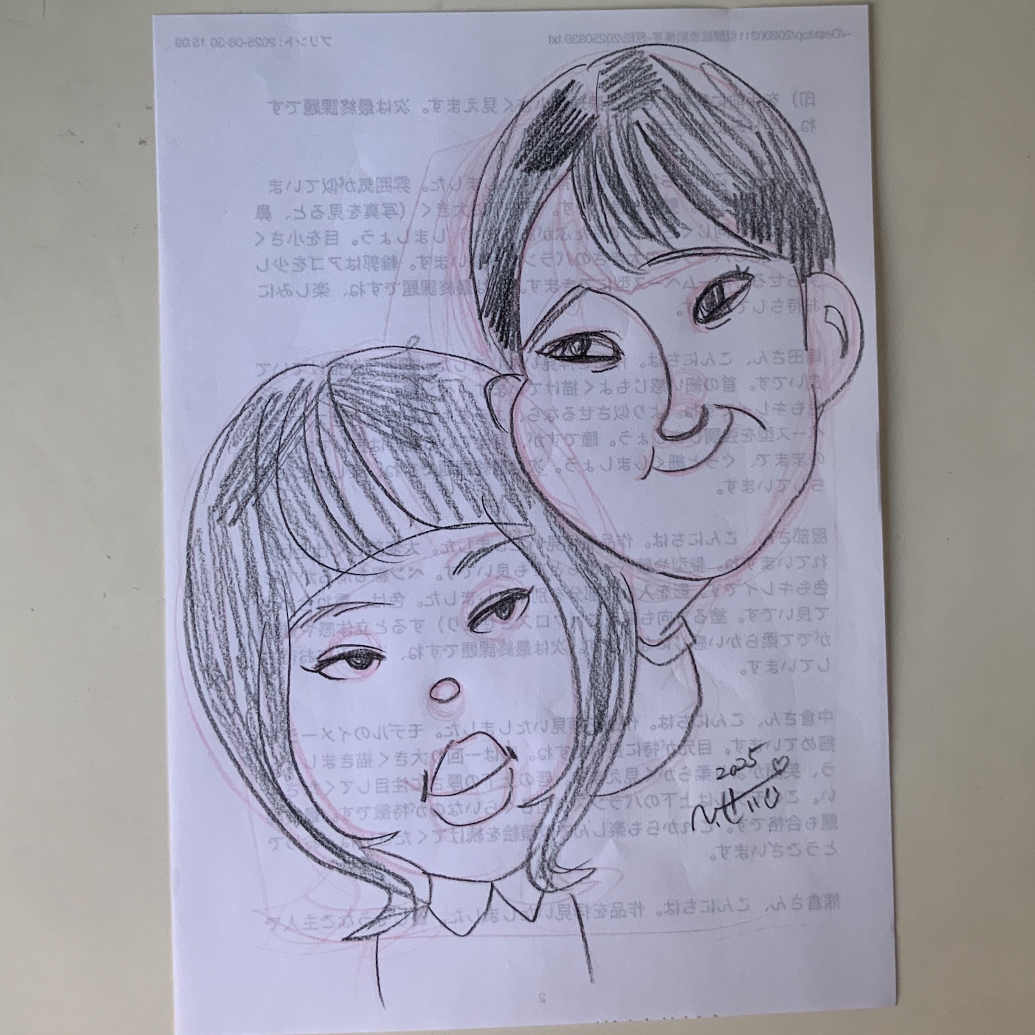 似顔絵練習 zizodo | 2025年10月23日 | 似顔絵 | コメントはまだありません 「毎日、ちょっとづつ、分解と再構築を!」って感じで考えながら描くことにしております視覚情報からイメージを作り出す練習です そんで、今回はこの2人! パーツの大きさの対比かな 目元が絵になってしもうた Related Posts 佐藤栞里さん似顔絵 コメントはまだありません | 9月 24, 2024 似顔絵修行0826 コメントはまだありません | 8月 26, 2020 米倉涼子さんの似顔絵 コメントはまだありません | 4月 8, 2025 似顔絵教室20200715 コメントはまだありません | 7月 16, 2020 About The Author 似顔絵せいこ 横浜市金沢区の似顔絵師爆誕!を目指して一日一歩で進みます。日常のアレコレ、似顔絵のアレコレを思うままに載せてます。 Add a Comment コメントをキャンセルメールアドレスが公開されることはありません。 ※ が付いている欄は必須項目ですComment:*Name:* Email Address:* Website: Save my name, email, and website in this browser for the next time I comment. reCaptcha の認証期間が終了しました。ページを再読み込みしてください。 Δ