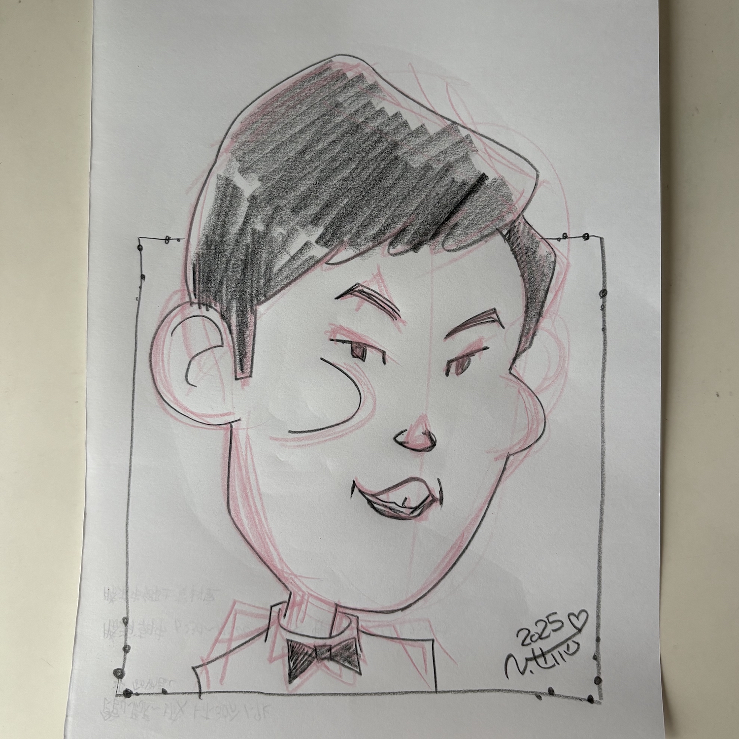 似顔絵練習 zizodo | 2025年11月18日 | 似顔絵 | コメントはまだありません 「毎日、ちょっとづつ、分解と再構築を!」って感じで考えながら描くことにしております視覚情報からイメージを作り出す練習です そんで、今回はこの人! ツリ目と丸い耳 アゴはもうちょっと鋭いかな? Related Posts 似顔絵修行0910 コメントはまだありません | 9月 10, 2021 ファンアートなるもの コメントはまだありません | 1月 8, 2025 似顔絵修行1021 コメントはまだありません | 10月 21, 2020 フリマ無事終了 コメントはまだありません | 6月 13, 2022 About The Author 似顔絵せいこ 横浜市金沢区の似顔絵師爆誕!を目指して一日一歩で進みます。日常のアレコレ、似顔絵のアレコレを思うままに載せてます。 Add a Comment コメントをキャンセルメールアドレスが公開されることはありません。 ※ が付いている欄は必須項目ですComment:*Name:* Email Address:* Website: Save my name, email, and website in this browser for the next time I comment. reCaptcha の認証期間が終了しました。ページを再読み込みしてください。 Δ