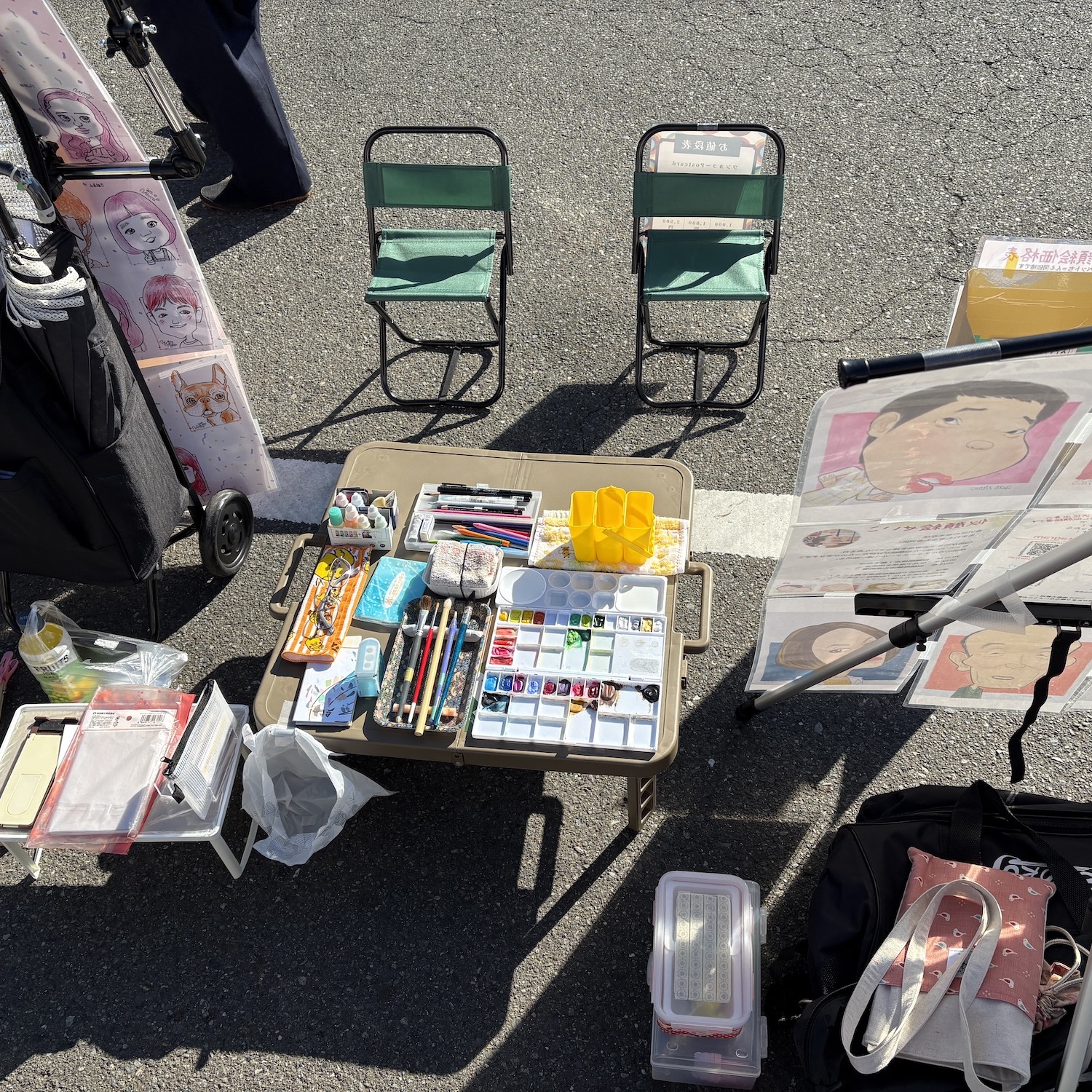 似顔絵は私だけで、日用品、植物販売が多かったです。お店の駐車場ということもあり賑わっていました。「地域活性化に続けて欲しいイベント」だと思いました。私の両親のように「駅までは出られないものの、近所のお散歩が楽しみ」な方でも「掘り出し物が見つかるかも?」と足を運んでもらえますし。