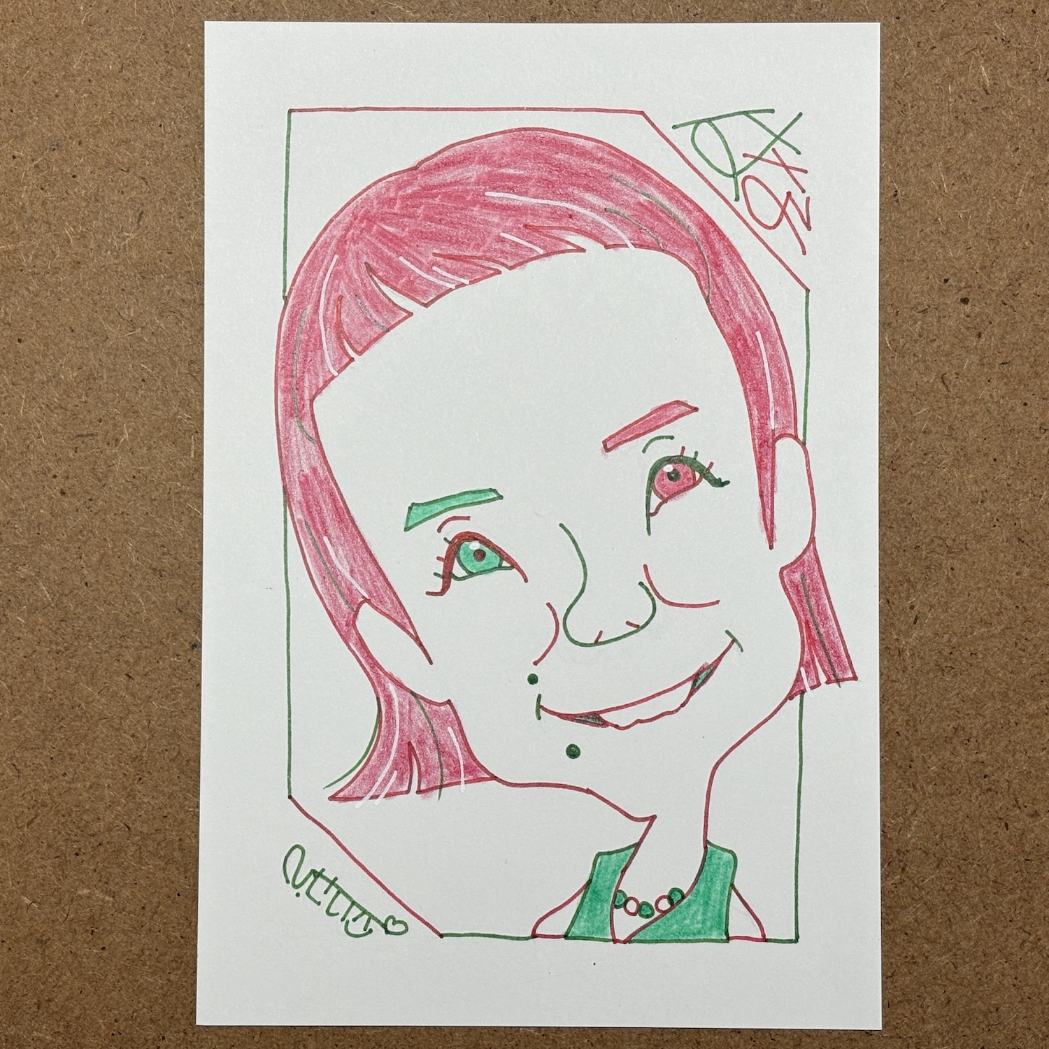 はなさん似顔絵 zizodo | 2026年1月29日 | 似顔絵 | コメントはまだありません <練習>二色作品。横浜出身から「はな」さん。髪型がとっても似合ってますよね。私もこうなりたいです〜(^^)使用:プロッキー、クーピー、ハガキサイズ パッツンも素敵ですね Related Posts 似顔絵修行0824 コメントはまだありません | 8月 24, 2021 似顔絵修行1225 コメントはまだありません | 12月 26, 2019 大石静さんの似顔絵 コメントはまだありません | 3月 22, 2024 田中瞳さん似顔絵 コメントはまだありません | 8月 25, 2024 About The Author 似顔絵せいこ 横浜市金沢区の似顔絵師爆誕!を目指して一日一歩で進みます。日常のアレコレ、似顔絵のアレコレを思うままに載せてます。 Add a Comment コメントをキャンセルメールアドレスが公開されることはありません。 ※ が付いている欄は必須項目ですComment:*Name:* Email Address:* Website: Save my name, email, and website in this browser for the next time I comment. reCaptcha の認証期間が終了しました。ページを再読み込みしてください。 Δ
