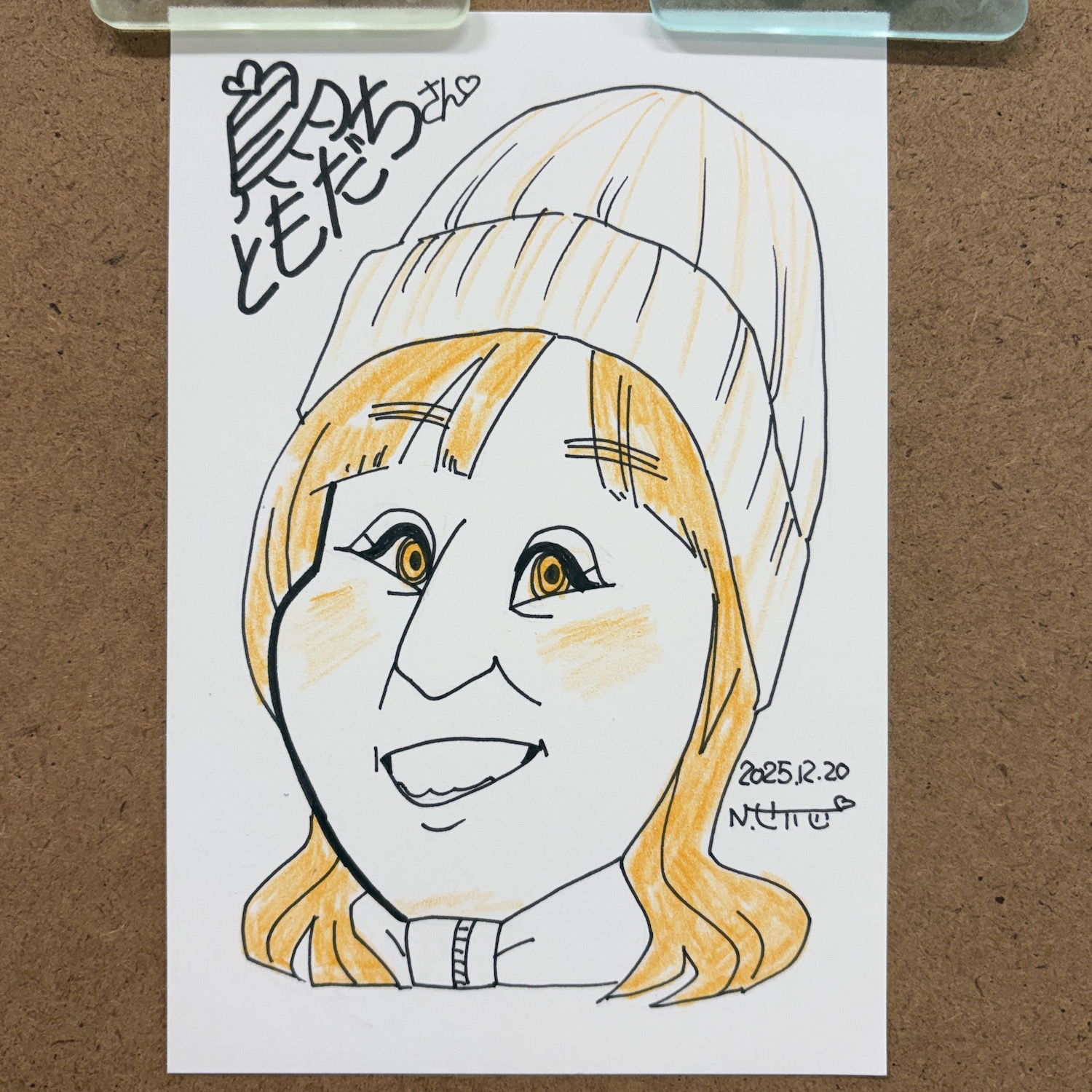 席書作品 zizodo | 2026年2月8日 | 似顔絵 | コメントはまだありません <現場サンプル>席描作品。小鳥グッツ作家さんです。掲載許可ありがとうございます。鳥さんの話で盛り上がっちゃってとっても楽しかった〜。使用:プロッキー、クーピー、ハガキサイズ 鳥好きさん Related Posts 似顔絵練習 コメントはまだありません | 11月 25, 2025 似顔絵練習2023-0015 コメントはまだありません | 5月 20, 2023 似顔絵練習 コメントはまだありません | 10月 17, 2025 似顔絵練習 コメントはまだありません | 1月 23, 2024 About The Author 似顔絵せいこ 横浜市金沢区の似顔絵師爆誕!を目指して一日一歩で進みます。日常のアレコレ、似顔絵のアレコレを思うままに載せてます。 Add a Comment コメントをキャンセルメールアドレスが公開されることはありません。 ※ が付いている欄は必須項目ですComment:*Name:* Email Address:* Website: Save my name, email, and website in this browser for the next time I comment. reCaptcha の認証期間が終了しました。ページを再読み込みしてください。 Δ